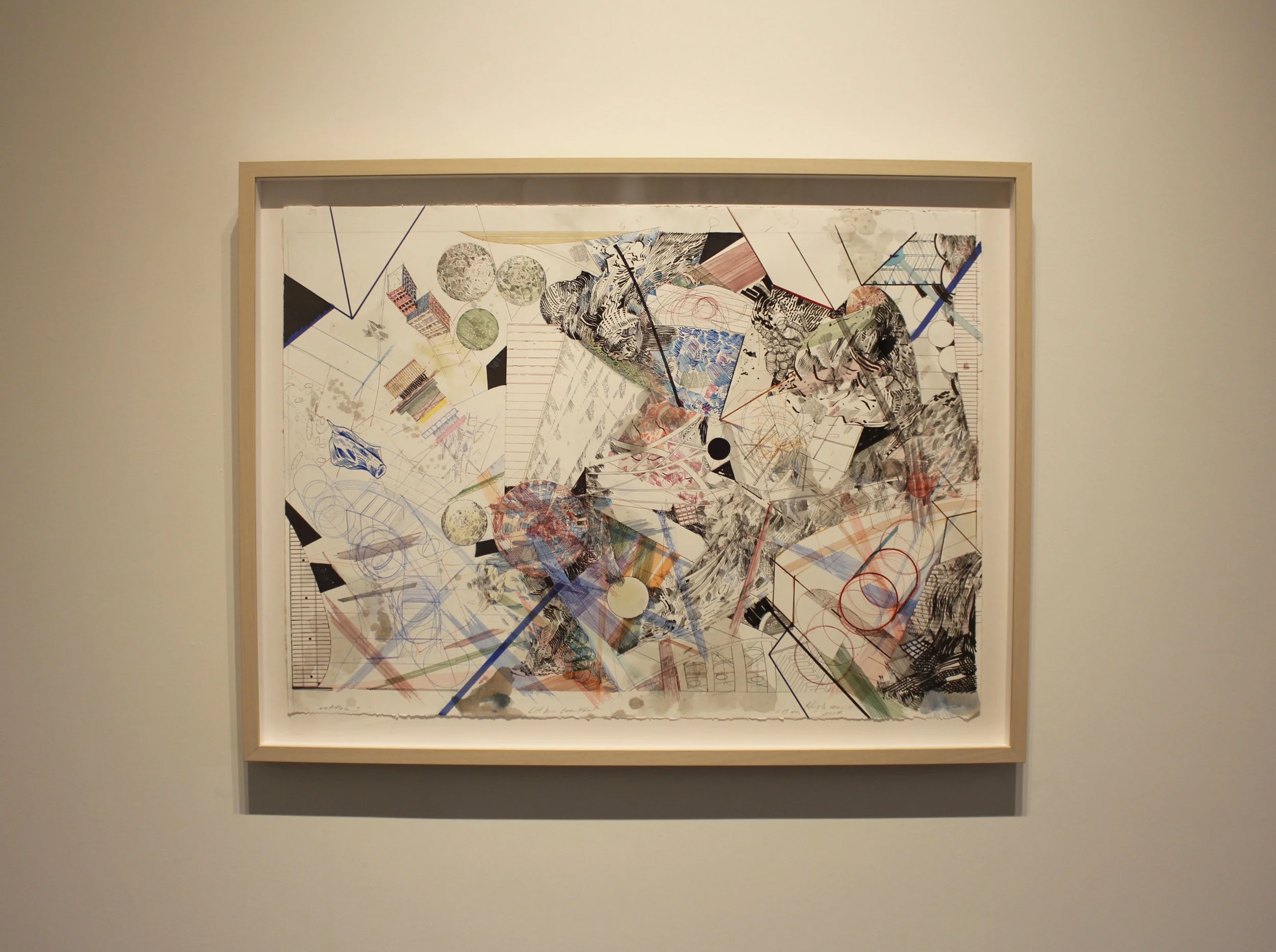 In September 2016, Jim Sajovic, longstanding professor at the Kansas City Art Institute celebrated his retirement. Anyone who knows Jim had no doubt that his retirement would only invigorate his art making process. The work that Jim has produced in the months following is nothing short of prolific, an entire new body to be exact. “Provisional Chaos”, is made up of colorful energized paintings that play on alignments and convergences of color and structural relationships. The concept and process of creating these paintings nods to Raphael Rubenstein’s notion of “Provisional Painting” where artists, “In different ways, all deliberately turn away from strong’ painting for something that seems to constantly risk inconsequence or collapse.” Jim sets out to create a piece with, “No idea what the appearance of the finished work will be.” Beginning with selected images from artists such as Albert Oehlen and Christopher Wood, Sajovic organically adds and retracts colors over layers of images of cells, viruses, minerals, lunar maps, Hubble photographs, and facial closeups until a finished product is achieved. “Provisional Chaos 2/26/17” incorporates Sajovic’s vibrant use of color with his newly developed highly abstracted forms in mastery of his personal style.
